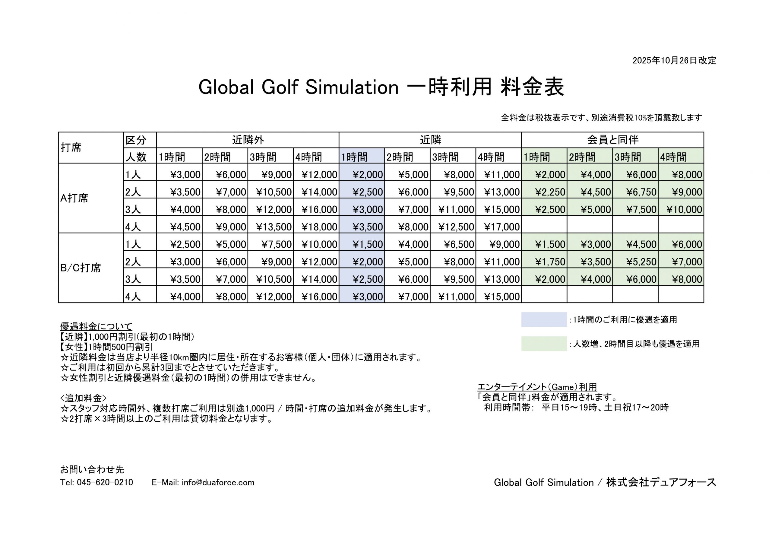 【24時間受付中!】Global Golf Simulation へのご入会、施設貸切ご利用