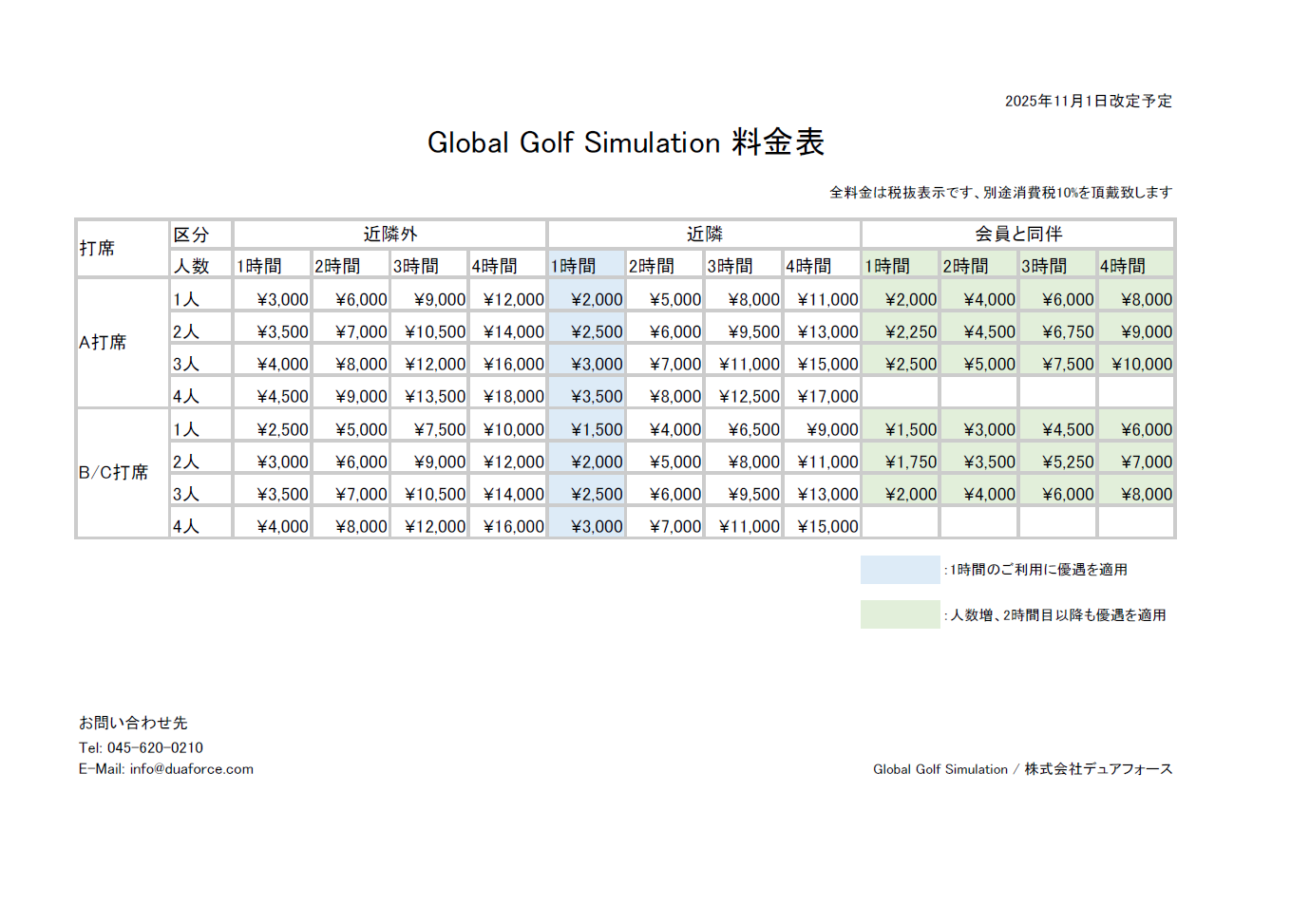 ■ 新料金表と詳細